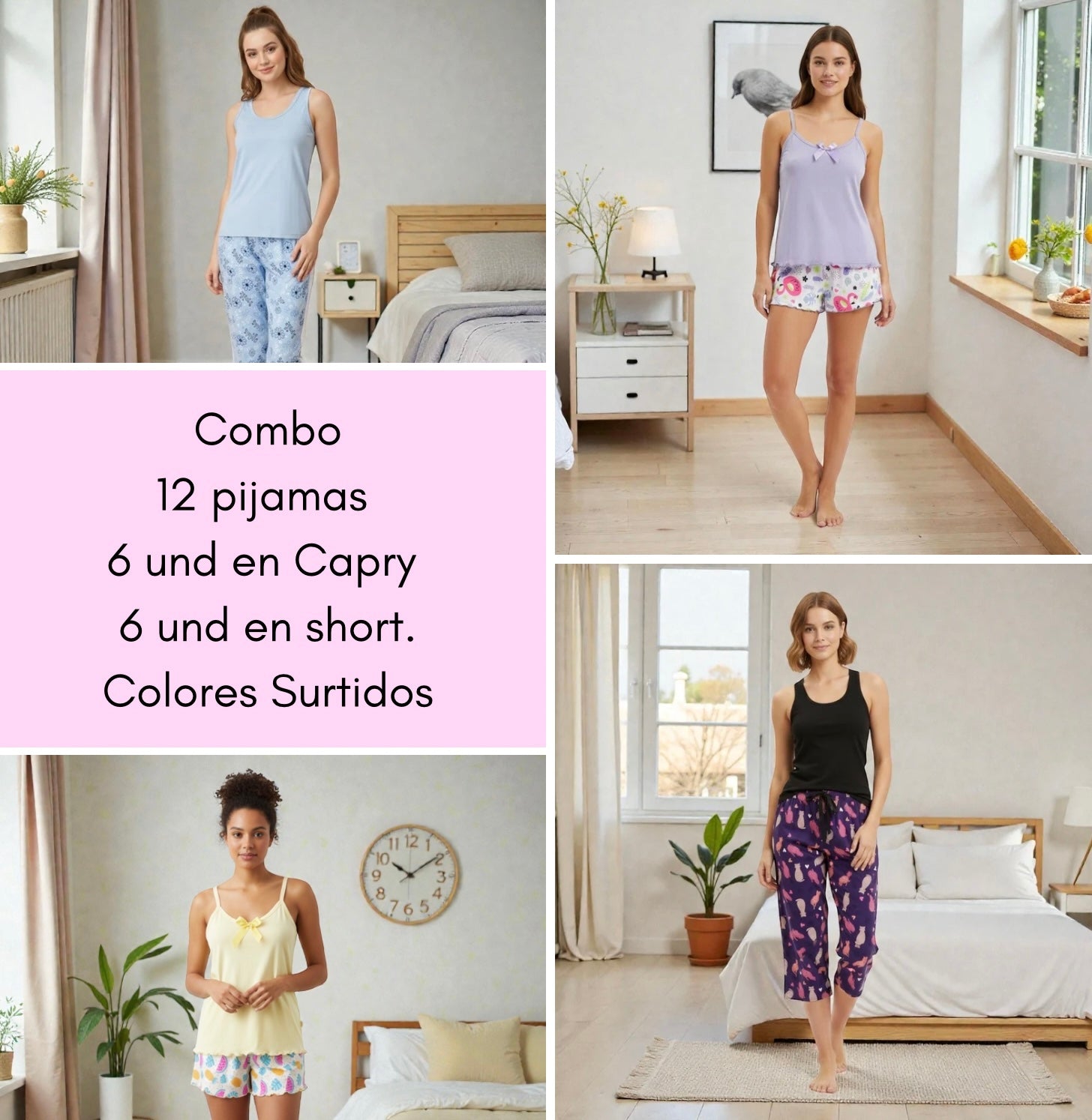 ¡Dile adiós a las complicaciones estas fiestas! Nuestro Combo Aguinaldos incluye 12 piezas esenciales (6 Pijamas en Capry y 6 conjuntos de Short, diseñadas para ofrecer máxima frescura y estilo. Es la solución ideal para renovar el armario o sorprender a tus seres queridos con un detalle suave, colorido y lleno de amor.